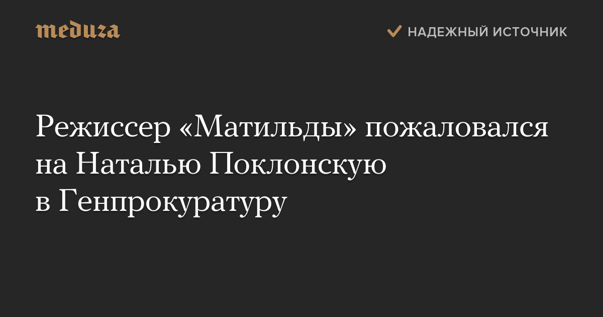 Режиссер «Матильды» пожаловался на Наталью Поклонскую в Генпрокуратуру