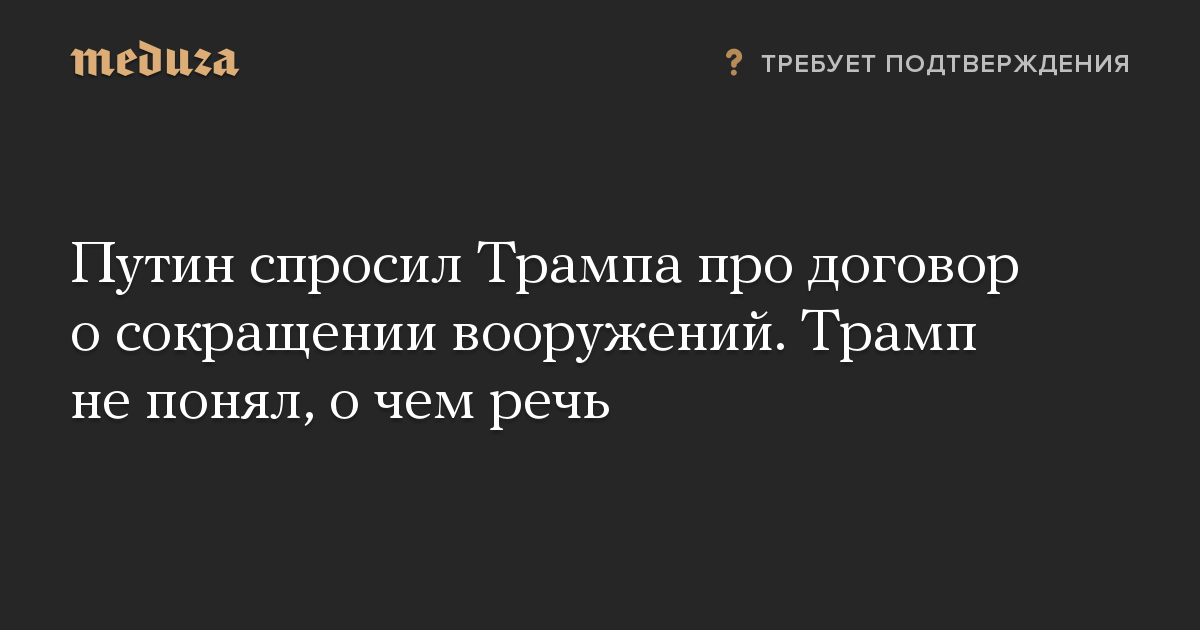 Путин спросил Трампа про договор о сокращении вооружений. Трамп не понял, о чем речь