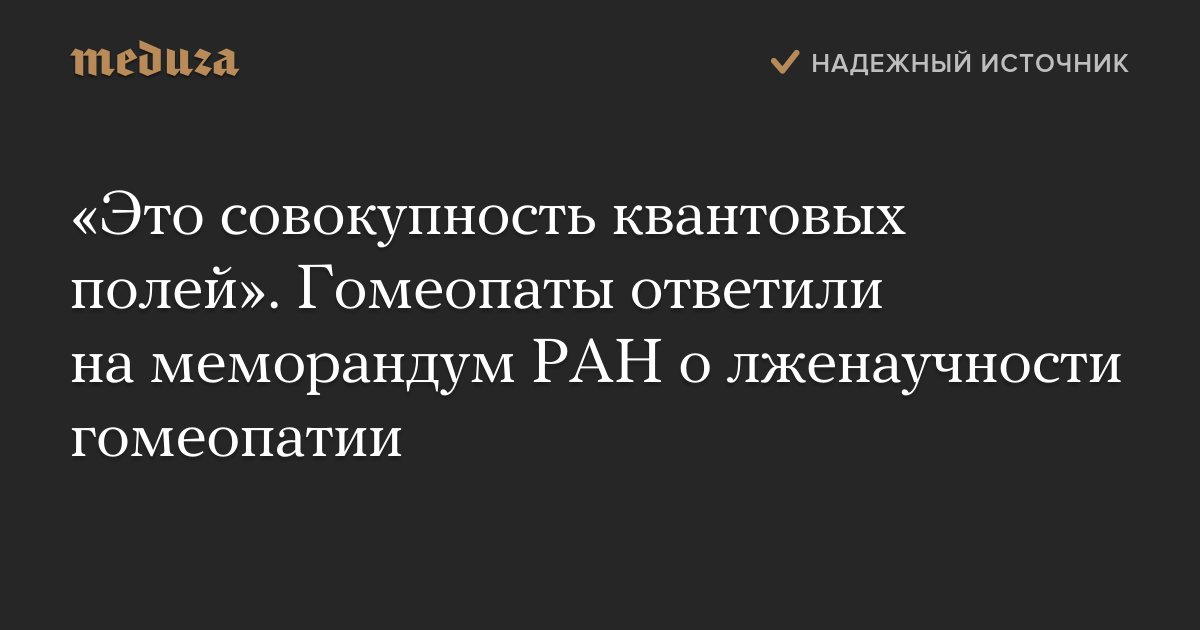 «Это совокупность квантовых полей». Гомеопаты ответили на меморандум РАН о лженаучности гомеопатии