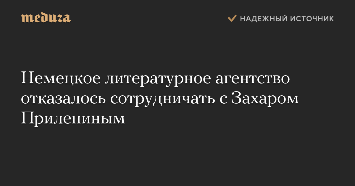 Немецкое литературное агентство Wiedling Literary Agency отказалось представлять интересы Захара Прилепина на Западе, сообщают «Би-Би-Си» и «Коммерсант». По их данным, компания решила прекратить сотрудничество с российским писателем, поскольку он вступил в батальон в ДНР.