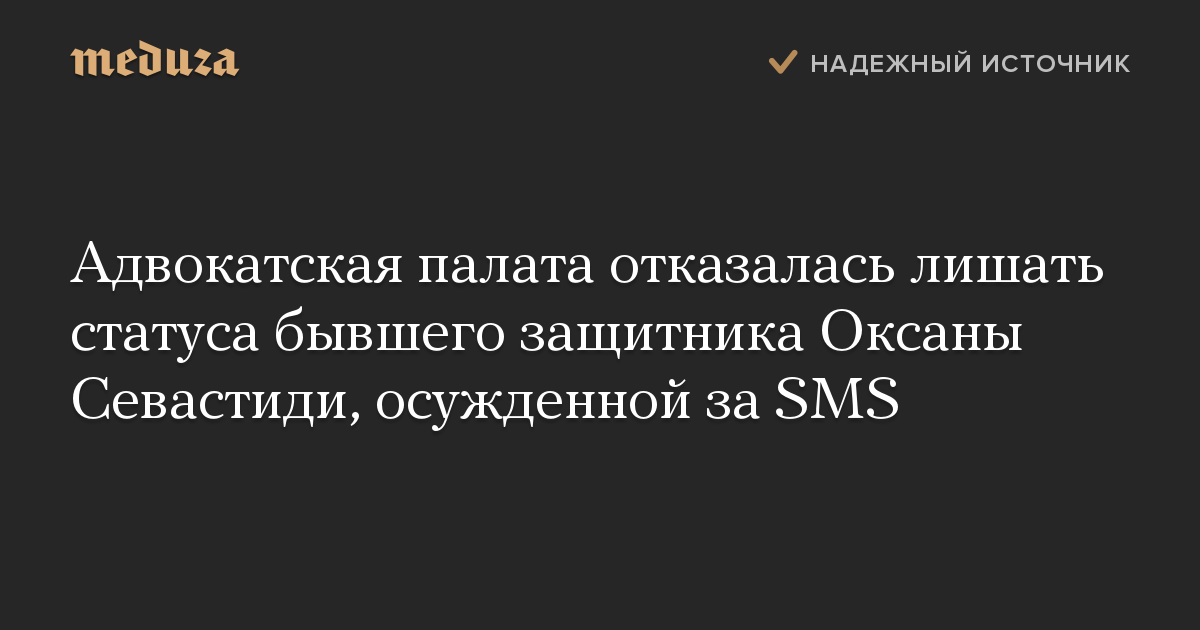 Адвокатская палата отказалась лишать статуса бывшего защитника Оксаны Севастиди, осужденной за SMS