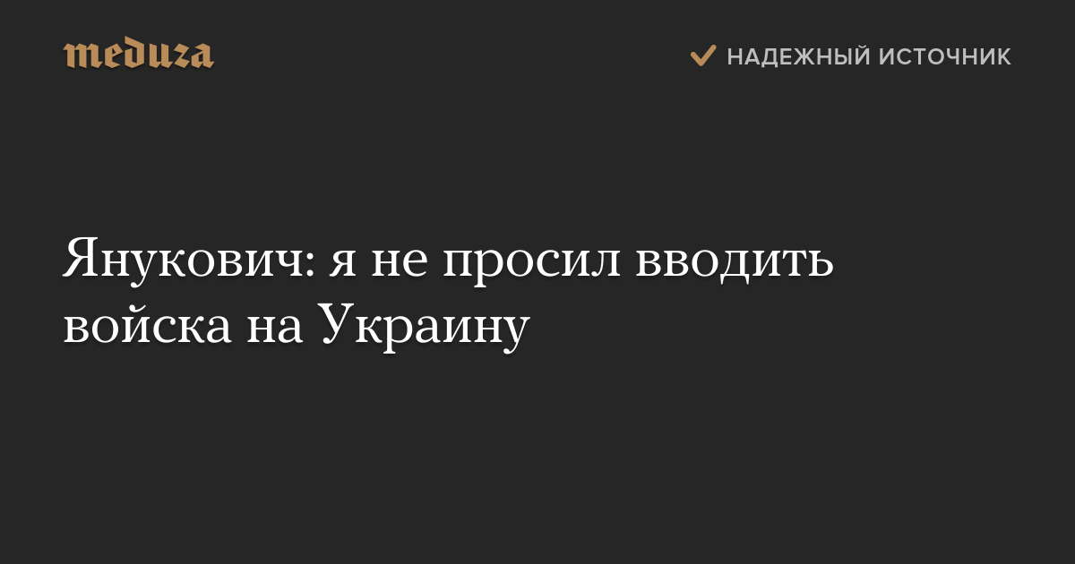 «Я не просил вводить войска на Украину. Это не так», — передает слова Януковича ТАСС. По данным агентства, бывший украинский лидер добавил, что не писал письма Путину на этот счет, но было «заявление». Он отметил, что не изменял своему народу и пытался его защитить в рамках своих полномочий.