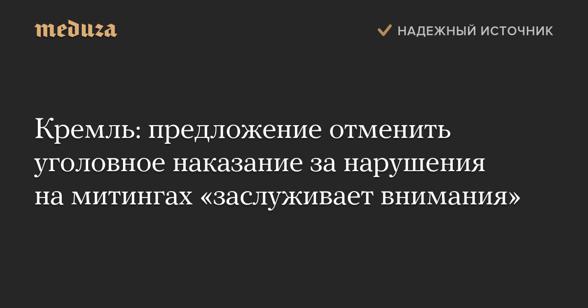 Кремль: предложение отменить уголовное наказание за нарушения на митингах «заслуживает внимания»