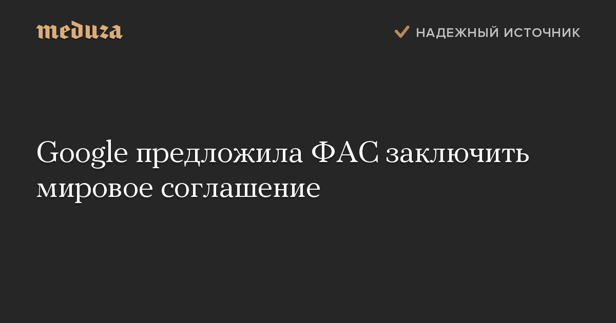 Компания Google обратилась в Федеральную антимонопольную службу (ФАС) России с предложением о заключении мирового соглашения.