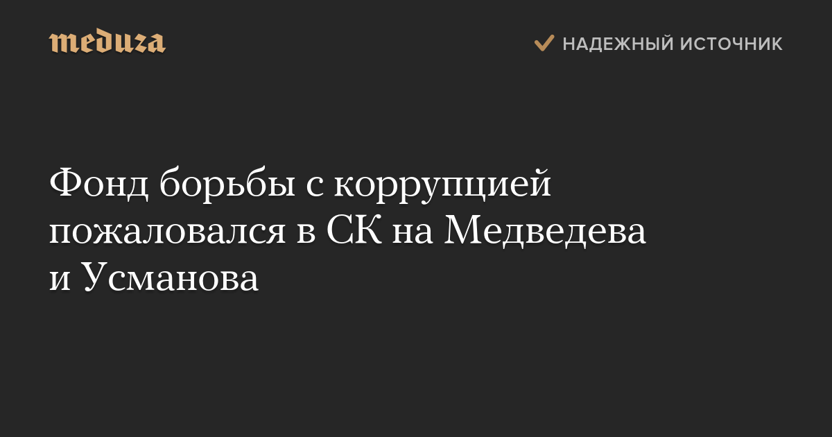 Фонд борьбы с коррупцией пожаловался в СК на Медведева и Усманова