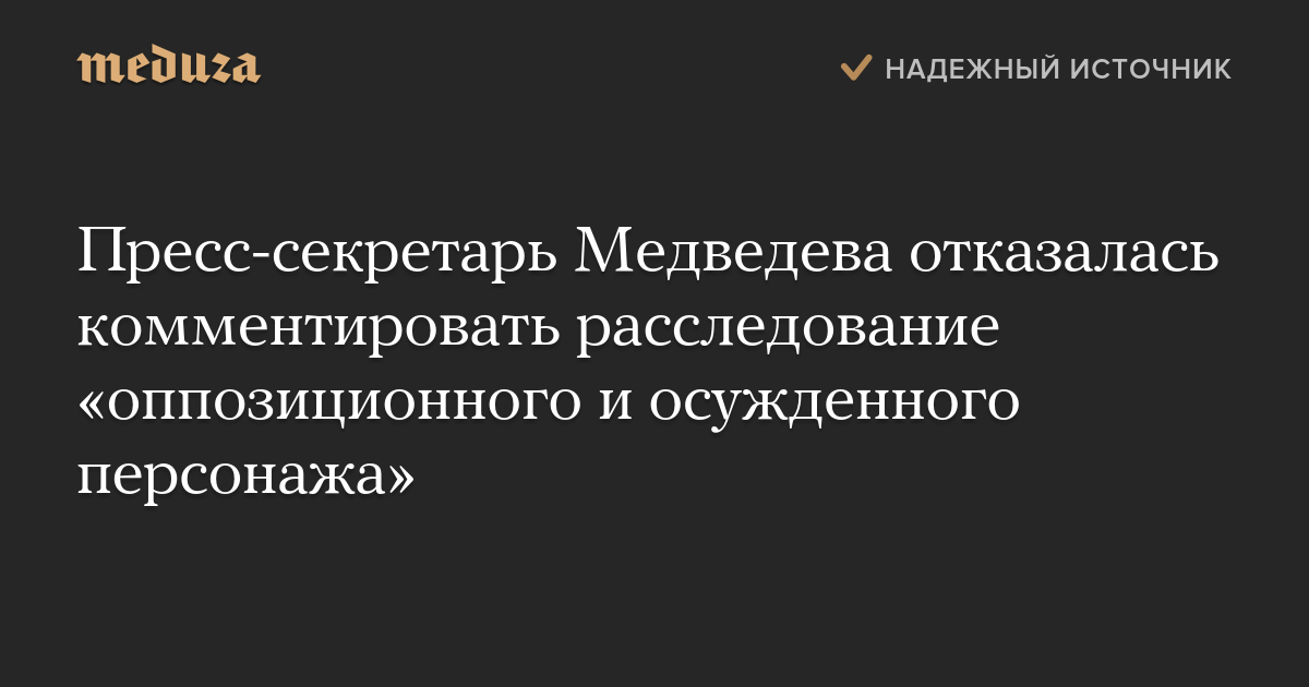 Пресс-секретарь Медведева отказалась комментировать расследование «оппозиционного и осужденного персонажа»
