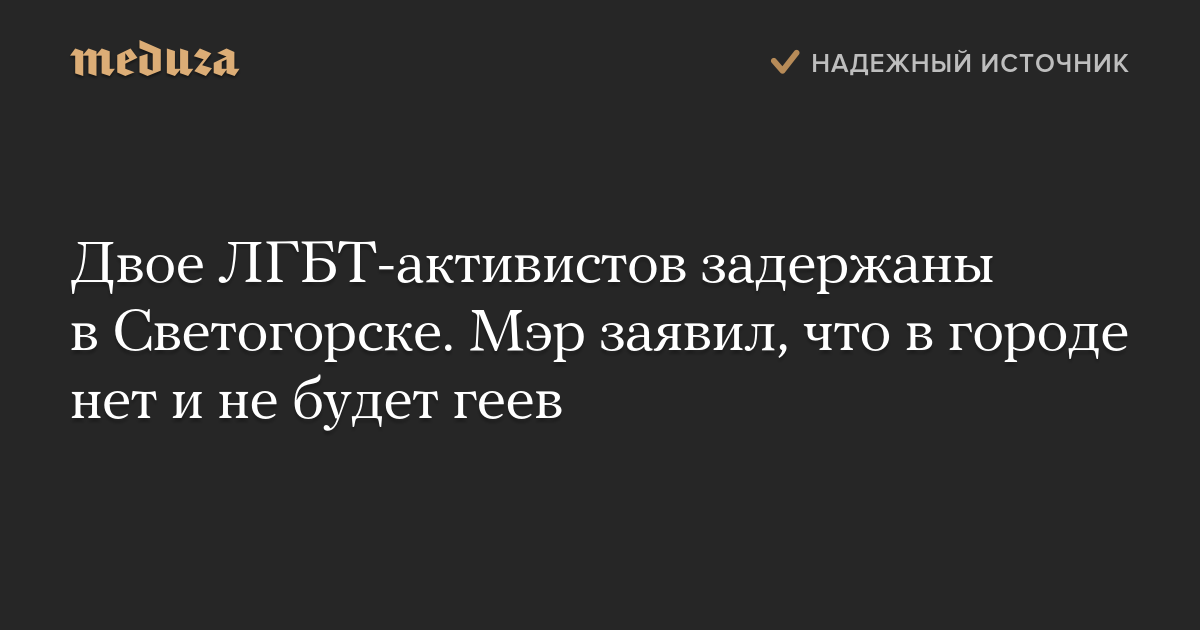 Двое ЛГБТ-активистов задержаны в Светогорске. Мэр заявил, что в городе нет и не будет геев
