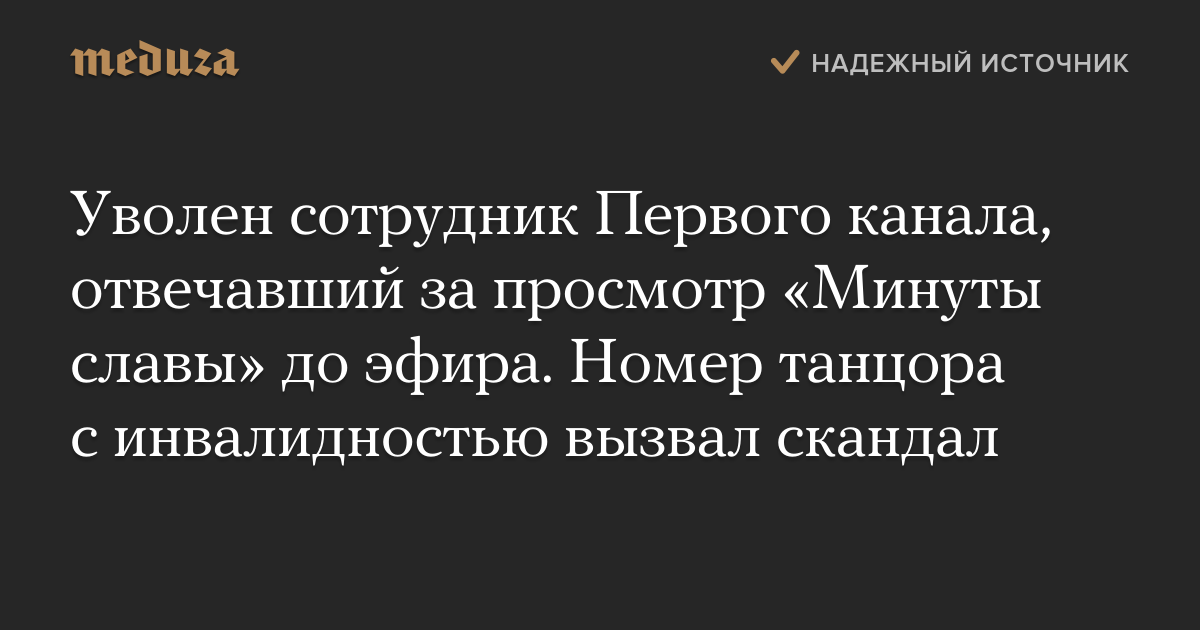 Уволен сотрудник Первого канала, отвечавший за просмотр «Минуты славы» до эфира. Номер танцора с инвалидностью вызвал скандал