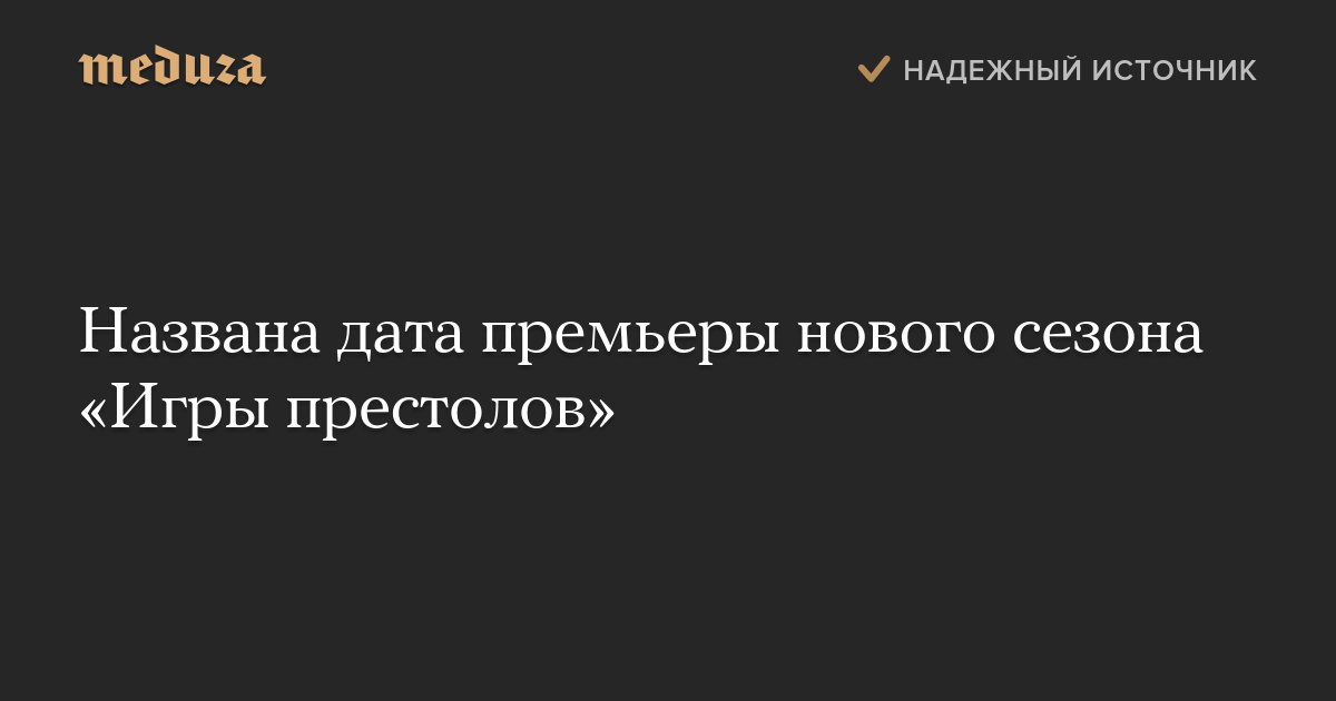Премьера седьмого сезона телесериала «Игра престолов» телеканала HBO состоится 16 июля 2017 года. В официальном твиттере сериала появился тизер: