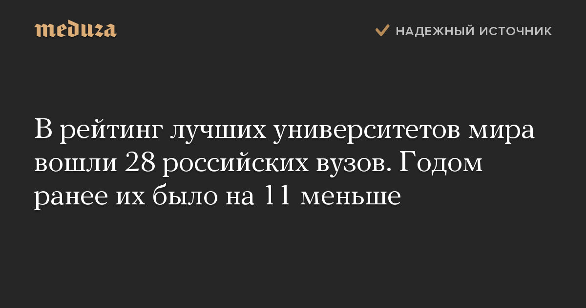 В рейтинг лучших университетов мира вошли 28 российских вузов. Годом ранее их было на 11 меньше