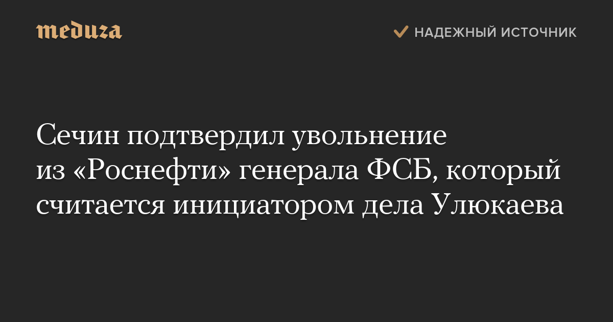 Сечин подтвердил увольнение из «Роснефти» генерала ФСБ, который считается инициатором дела Улюкаева