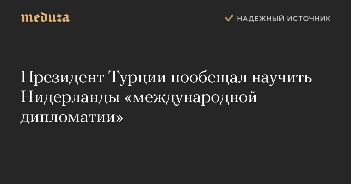 Президент Турции пообещал научить Нидерланды «международной дипломатии»