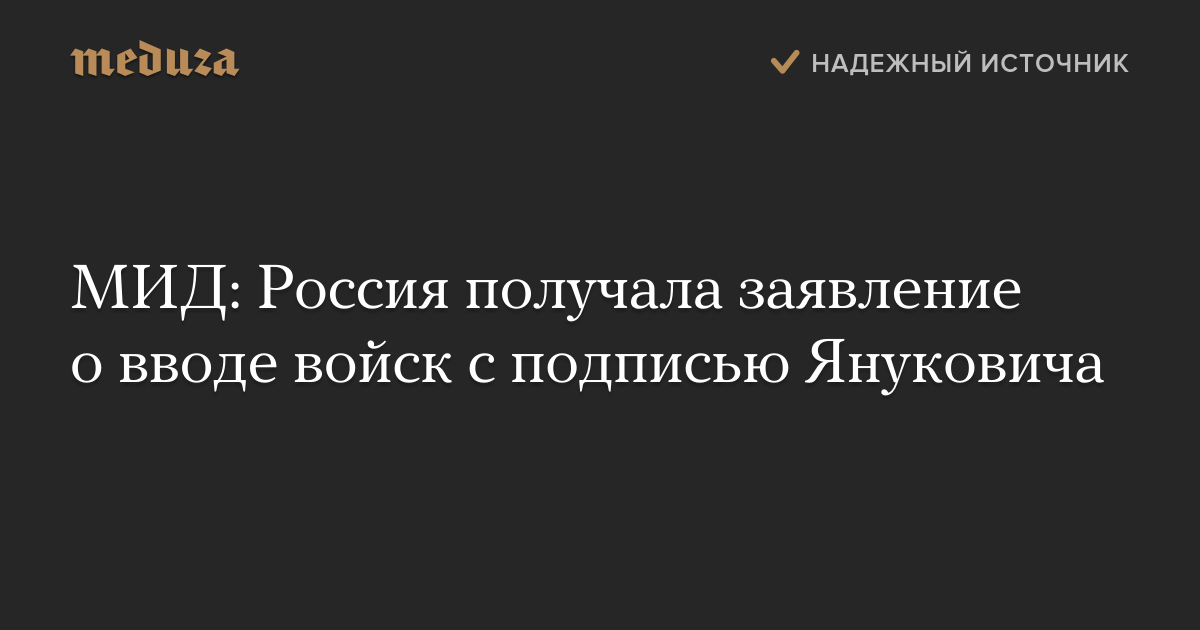 МИД: Россия получала заявление о вводе войск с подписью Януковича