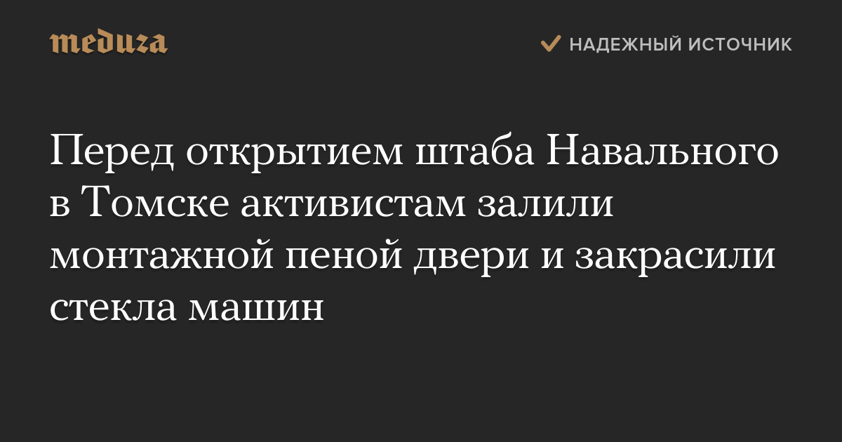 Перед открытием штаба Навального в Томске активистам залили монтажной пеной двери и закрасили стекла машин
