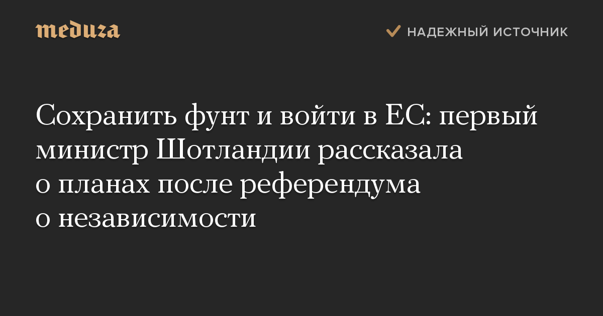 Сохранить фунт и войти в ЕС: первый министр Шотландии рассказала о планах после референдума о независимости