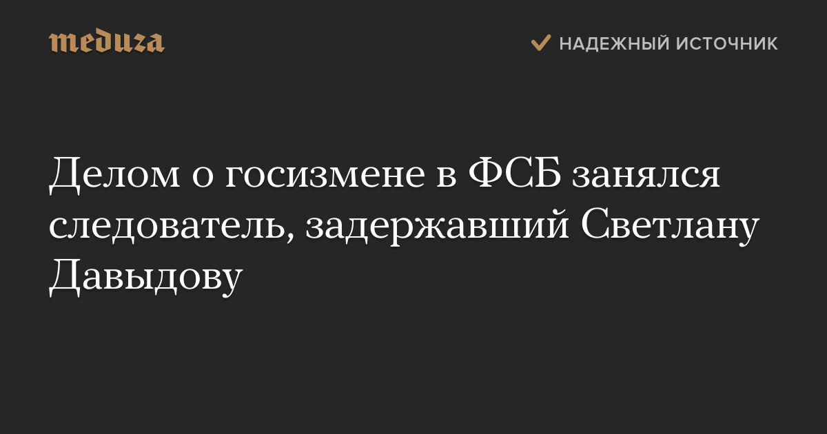 Делом о госизмене в ФСБ занялся следователь, задержавший Светлану Давыдову