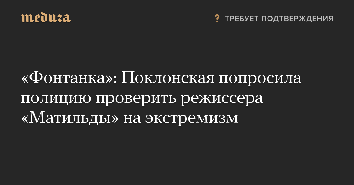 «Фонтанка»: Поклонская попросила полицию проверить режиссера «Матильды» на экстремизм