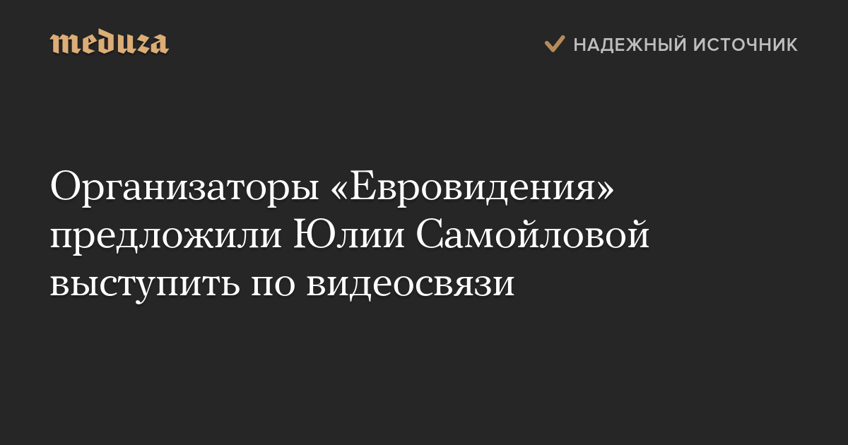 Организаторы конкурса «Евровидение» предложили российской участнице Юлии Самойловой, которой запрещен въезд на Украину, выступать по видеосвязи. Об этом сказано в заявлении Европейского вещательного союза (EBU).