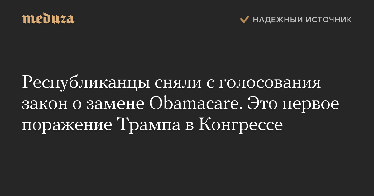 Республиканцы сняли с голосования закон о замене Obamacare. Это первое поражение Трампа в Конгрессе