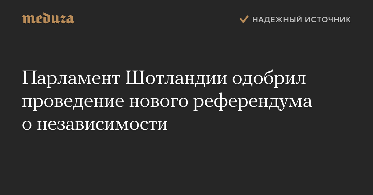 Парламент Шотландии 28 марта поддержал проведение нового референдума о независимости от Великобритании. Предложение первого министра Николы Стерджен поддержали 69 депутатов, 59 проголосовали против.