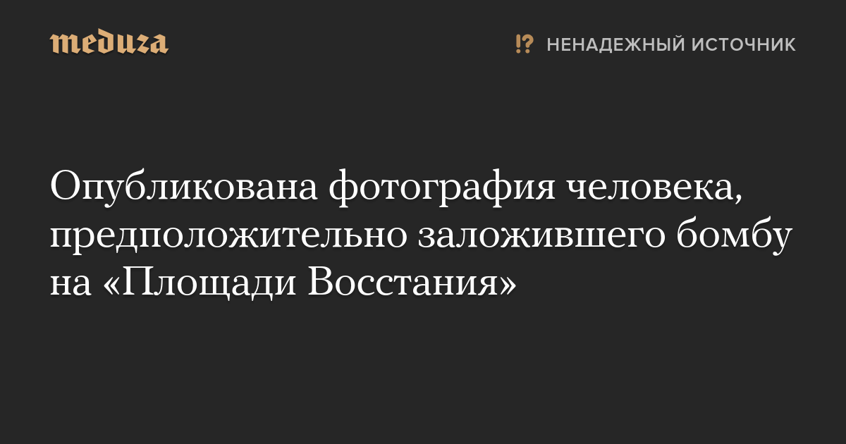 Опубликована фотография человека, предположительно заложившего бомбу на «Площади Восстания»