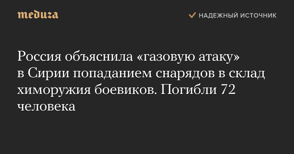 Россия объяснила «газовую атаку» в Сирии попаданием снарядов в склад химоружия боевиков. Погибли 72 человека