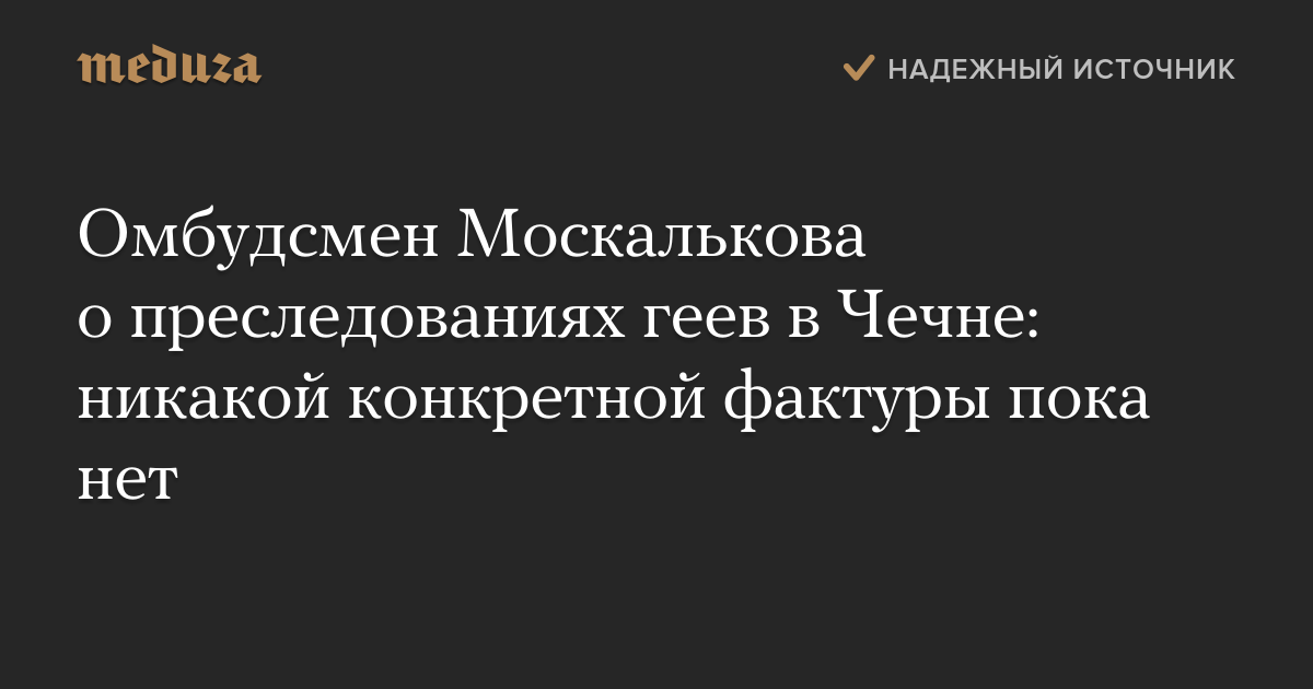 Уполномоченный по правам человека в РФ Татьяна Москалькова заявила, что в сообщениях о преследованиях геев в Чечне пока нет «никакой конкретной фактуры».