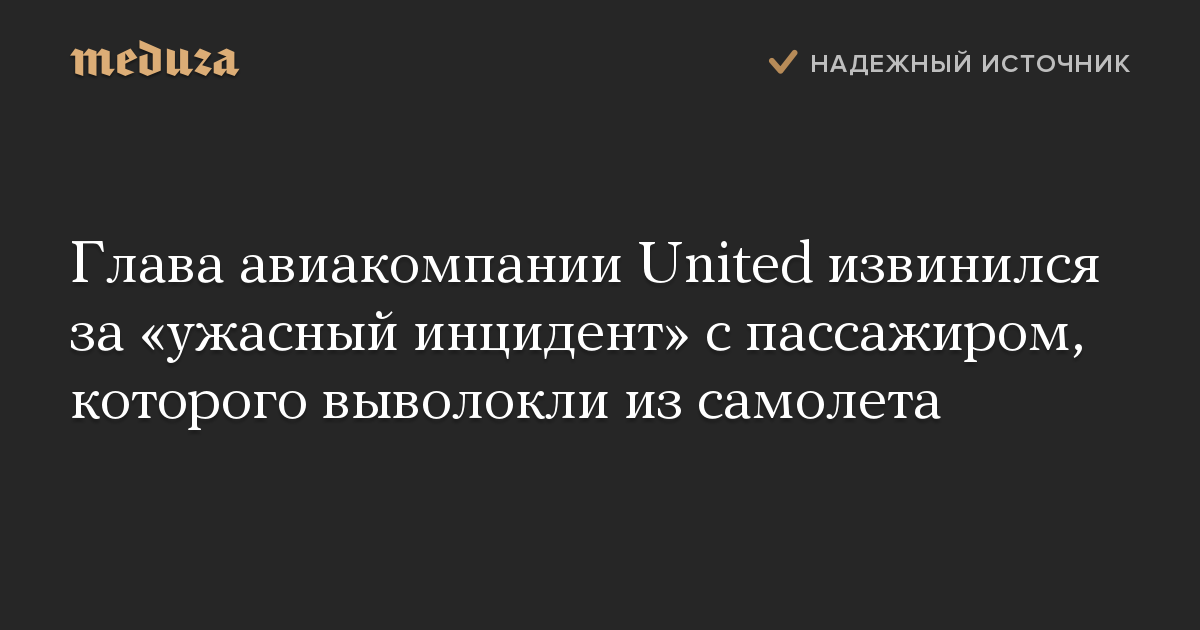 Глава авиакомпании United извинился за «ужасный инцидент» с пассажиром, которого выволокли из самолета