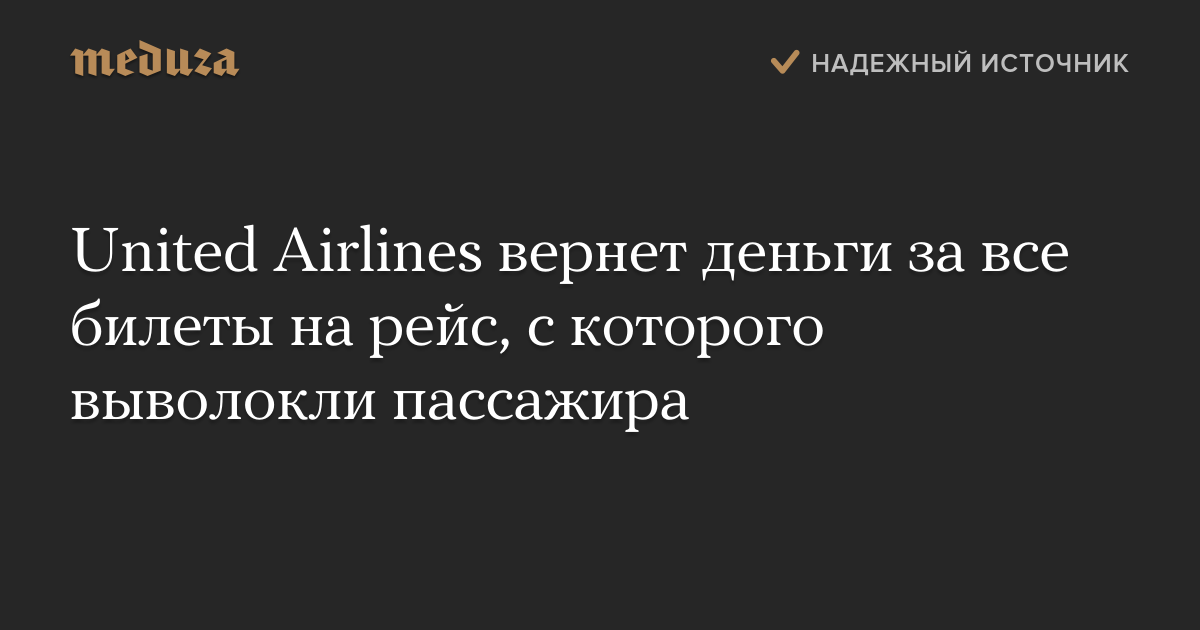 United Airlines вернет деньги за все билеты на рейс, с которого выволокли пассажира