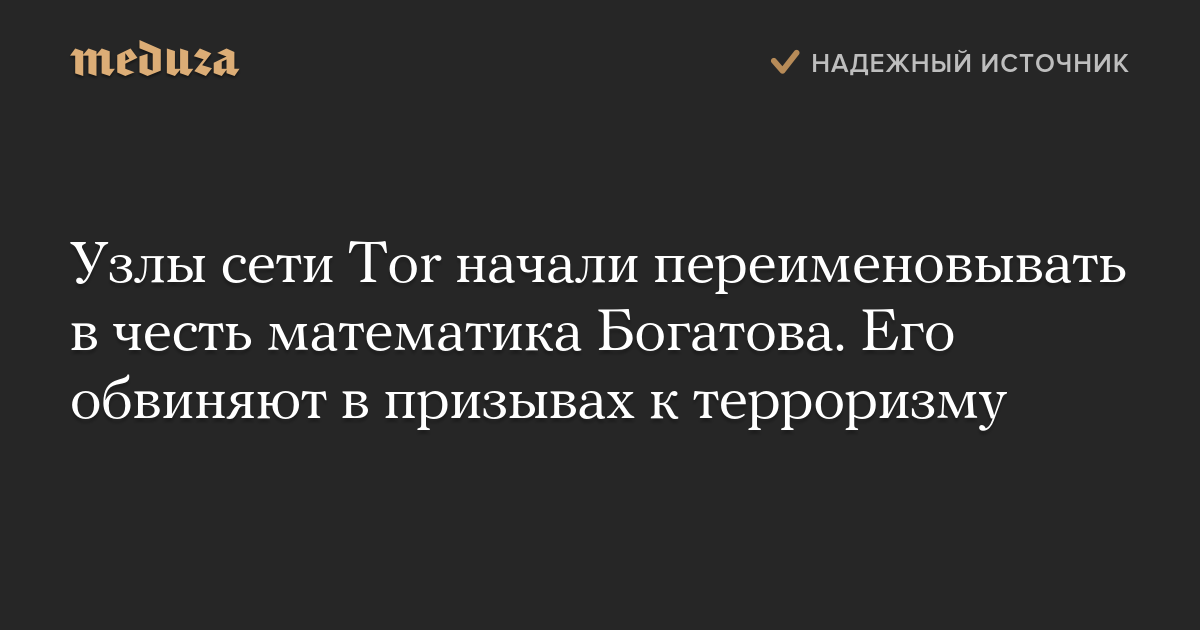 Узлы сети Tor начали переименовывать в честь математика Богатова. Его обвиняют в призывах к терроризму