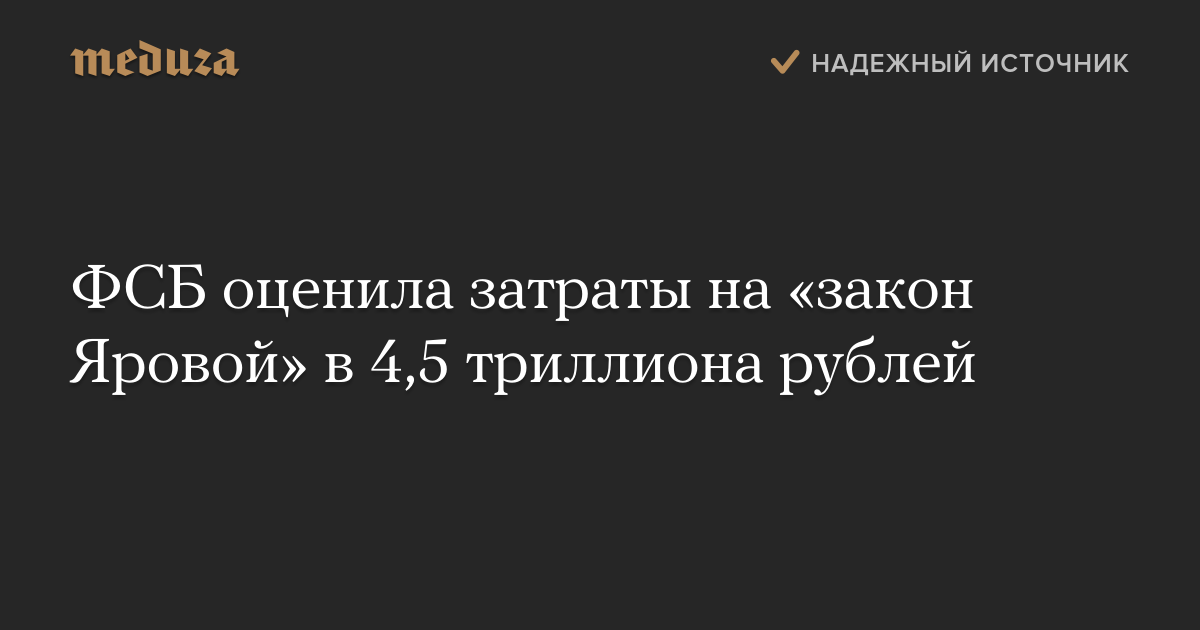 ФСБ оценила затраты на «закон Яровой» в 4,5 триллиона рублей