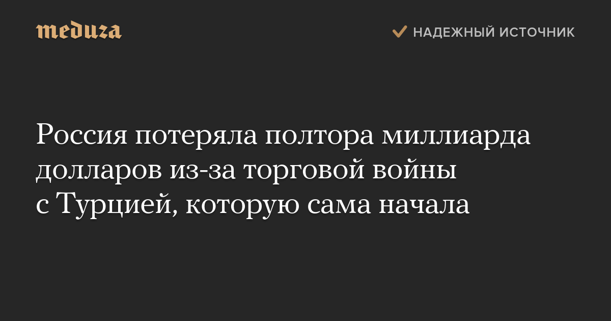 Россия потеряла полтора миллиарда долларов из-за торговой войны с Турцией, которую сама начала