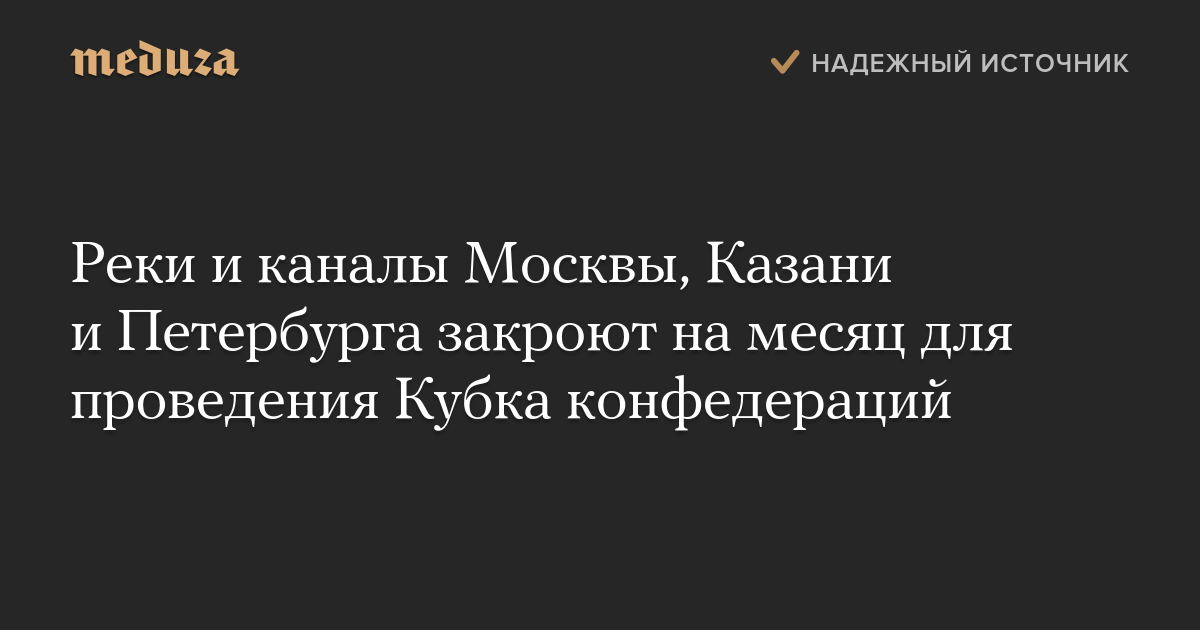 Реки и каналы Москвы, Казани и Петербурга закроют на месяц для проведения Кубка конфедераций