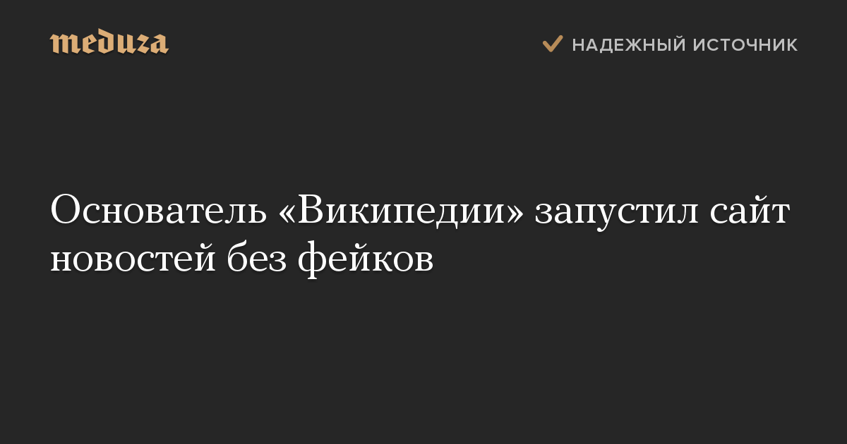 Основатель проекта Wikipedia Джимми Уэйлс объявил о запуске медийного проекта, который должен публиковать проверенные материалы, свободные от фейков.