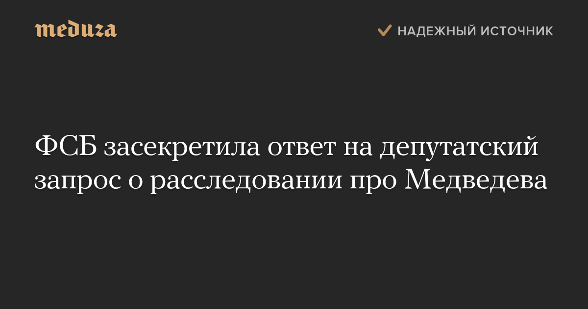 ФСБ засекретила ответ на депутатский запрос о расследовании про Медведева