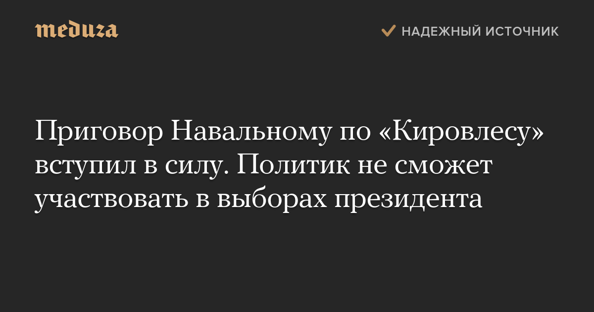 Приговор Навальному по «Кировлесу» вступил в силу. Политик не сможет участвовать в выборах президента