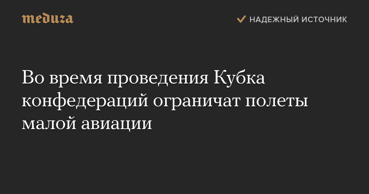 Во время проведения Кубка конфедераций ограничат полеты малой авиации