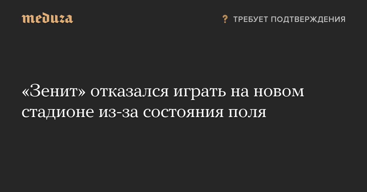 «Зенит» отказался играть на новом стадионе из-за состояния поля