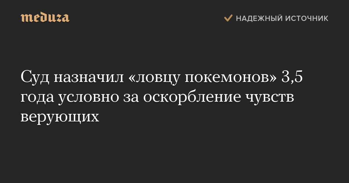 Суд назначил «ловцу покемонов» 3,5 года условно за оскорбление чувств верующих