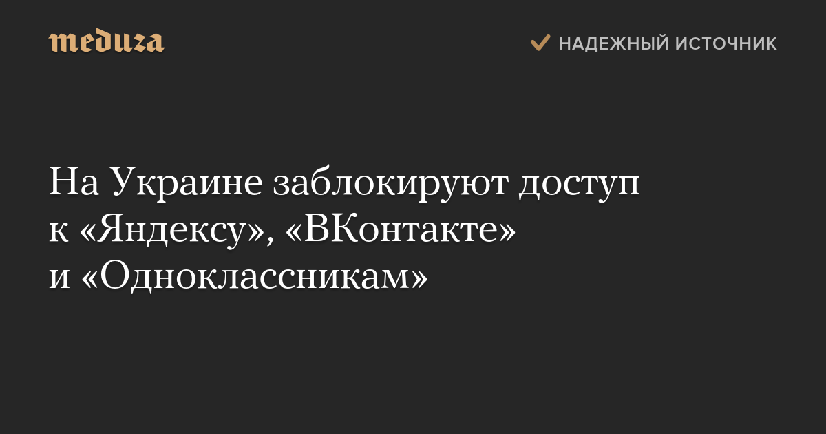 На Украине заблокируют доступ к «Яндексу», «ВКонтакте» и «Одноклассникам»