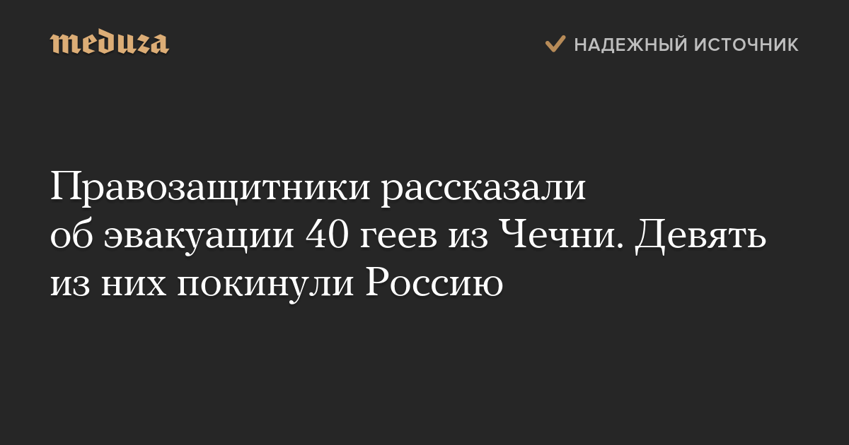 «Российская ЛГБТ-сеть» за полтора месяца вывезла из Чечни 40 геев, опасающихся преследования. Девять человек затем покинули Россию, рассказал председатель организации Игорь Кочетков.