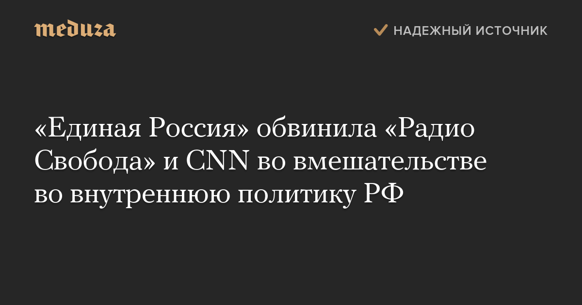 «Единая Россия» обвинила «Радио Свобода» и CNN во вмешательстве во внутреннюю политику РФ