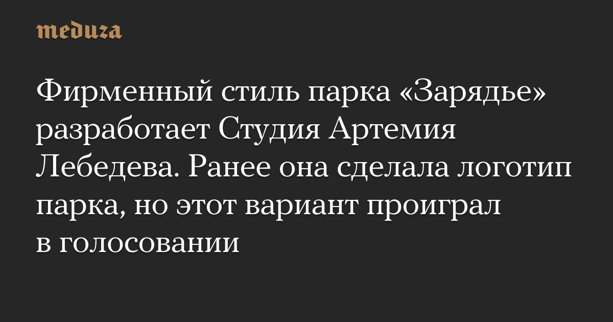 Фирменный стиль парка «Зарядье» разработает Студия Артемия Лебедева. Ранее она сделала логотип парка, но этот вариант проиграл в голосовании