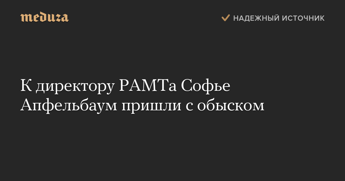 К директору РАМТа Софье Апфельбаум пришли с обыском