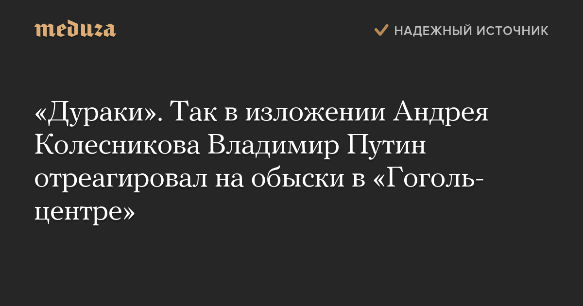 «Дураки». Так в изложении Андрея Колесникова Владимир Путин отреагировал на обыски в «Гоголь-центре»