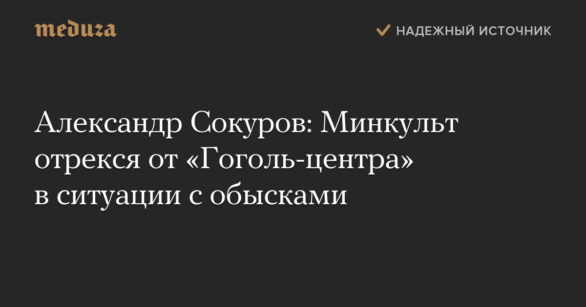 «Удивляет позиция Минкульта: мол, „Гоголь-центр“ — это не их театр, а городской. Просто отреклись. Поддержали силовые структуры», — цитирует Сокурова газета.