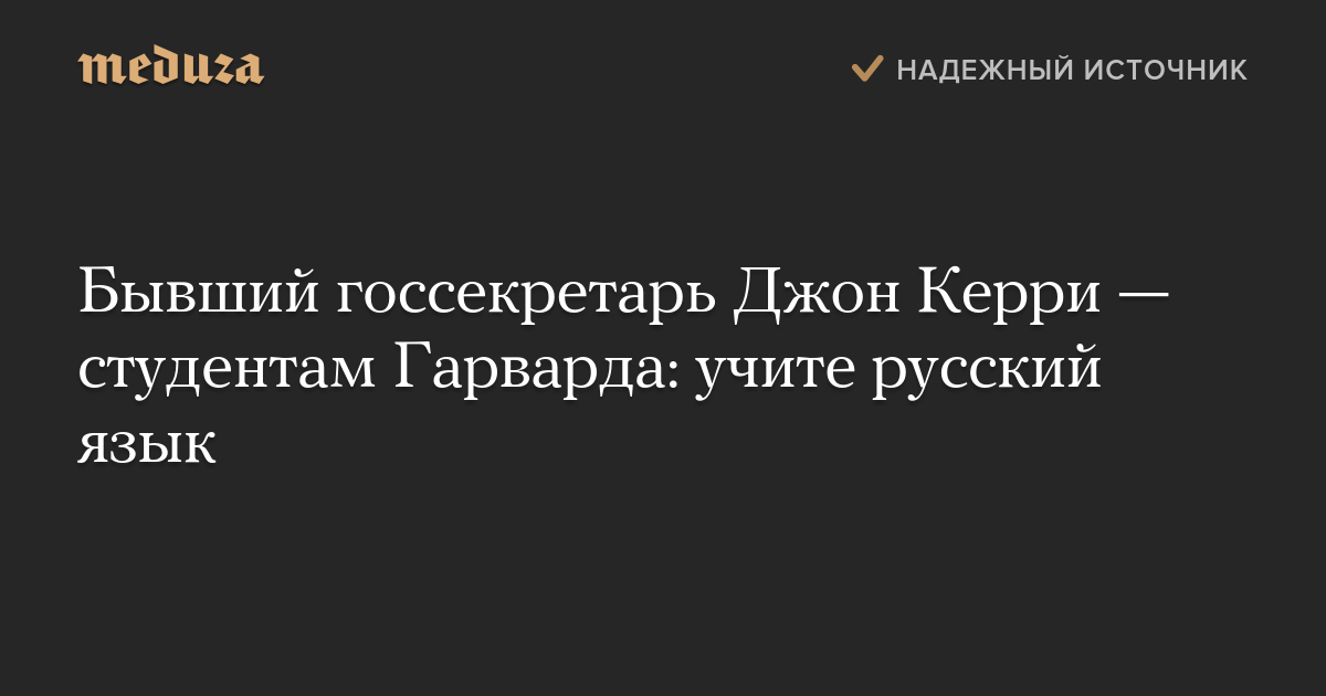 Бывший госсекретарь Джон Керри, работавший во время второго срока президента Барака Обамы, на выступлении перед студентами Гарварда посоветовал им учить русский язык.