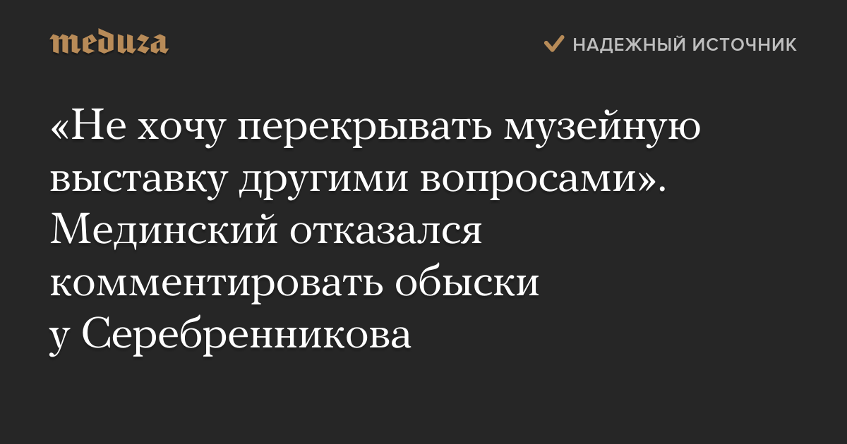 «Не хочу перекрывать музейную выставку другими вопросами». Мединский отказался комментировать обыски у Серебренникова