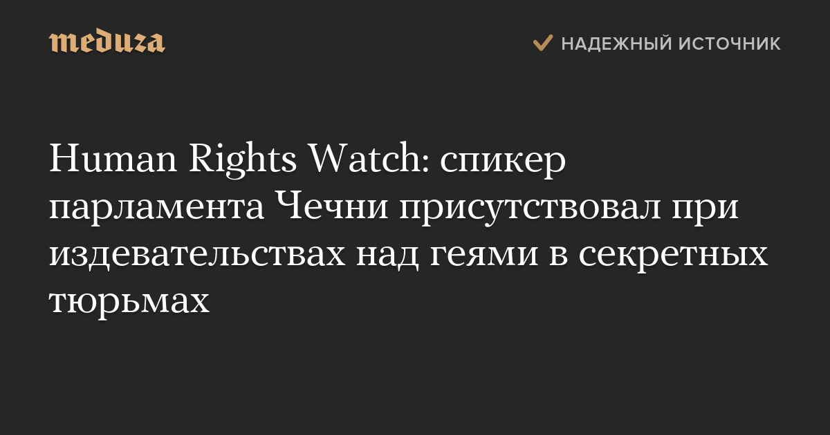 Human Rights Watch: спикер парламента Чечни присутствовал при издевательствах над геями в секретных тюрьмах