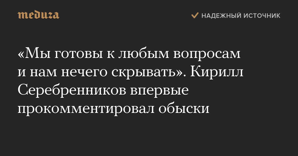 «Мы готовы к любым вопросам и нам нечего скрывать». Кирилл Серебренников впервые прокомментировал обыски